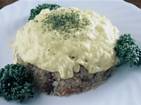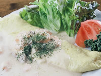 ● ふっくらたまごのオムレツ 小エビ゙とマッシュルームの クリームソース仕立て
